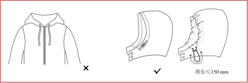 按照GB31701-2015要求,检查头部和颈部、肩带、腰部等部位的绳带是否符合要求。(该项安全要求仅针对14岁以下的学生穿着的校服,高中生穿着的校服不适用此要求。)检查校服内是否存在残留的尖锐物,拉锁等部位是否存在锐利边缘。
