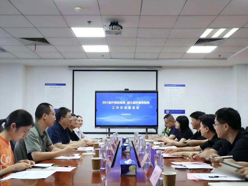 湖北省纤维检验局党委委员、副局长武晗,四川省纤维检验局党委委员、副局长夏青松,以及相关科室(部门)参加交流。