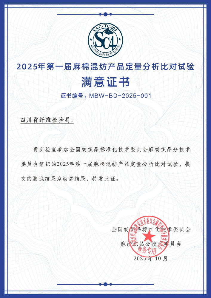 省纤检局在2025年第一届麻棉混纺产品定量分析比对试验中获满意结果